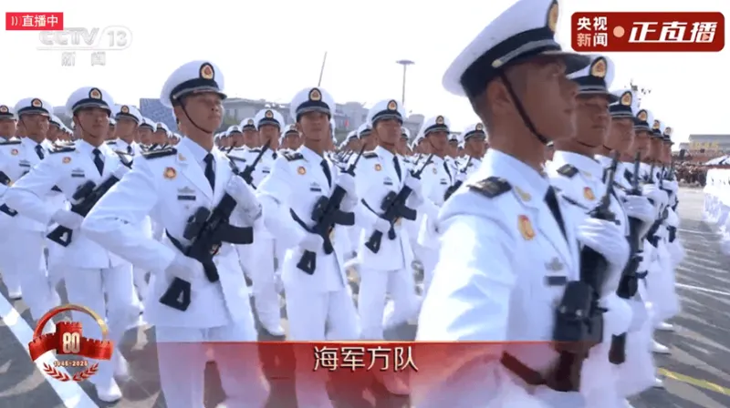 海军方队是整个徒步方队中年龄最小的方队,平均年龄只有21岁,他们身着整齐的海军制服,步伐矫健,展示了海军的青春活力与飒爽英姿。