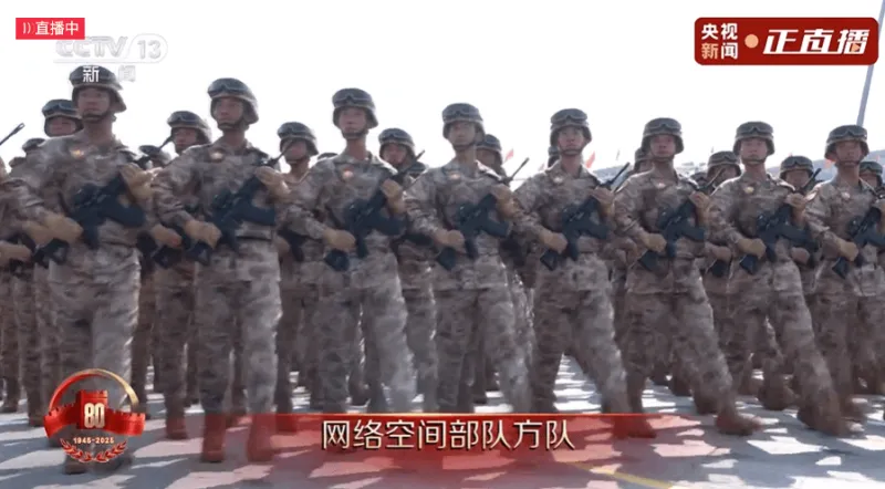 网络空间部队方队首次接受检阅,中国积极倡导建设和平、安全、开放、合作、有序的网络空间,坚决维护网络安全,坚定捍卫网络主权。