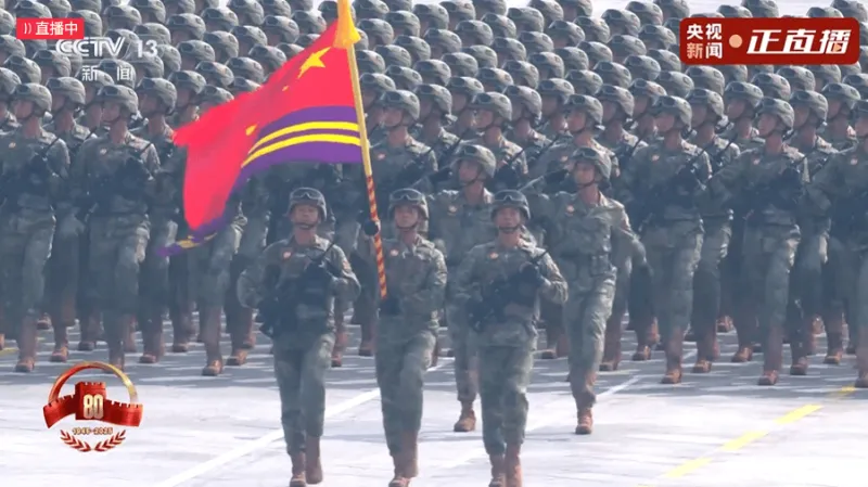 战旗方队集中展示了抗战时期的功勋荣誉旗帜,每一面都承载着抗战先烈用热血和生命铸就的功勋荣誉,由所在单位官兵擎旗受阅,寓意着伟大抗战精神的接续传承。