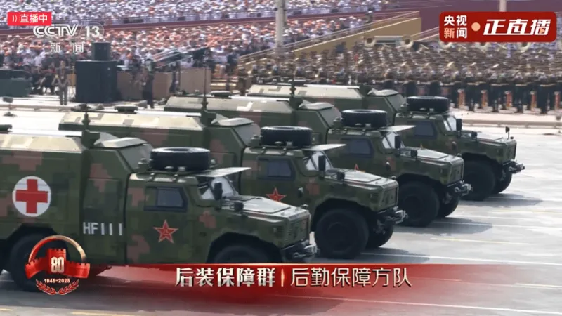 后装保障群装备方队展示了各种先进的后勤保障和装备维修装备,如野战炊事车、装备抢修车等,这些装备能够在战时为部队提供及时、有效的物资供应和装备维修保障,确保部队的持续作战能力,是我军后勤保障现代化建设的重要体现。