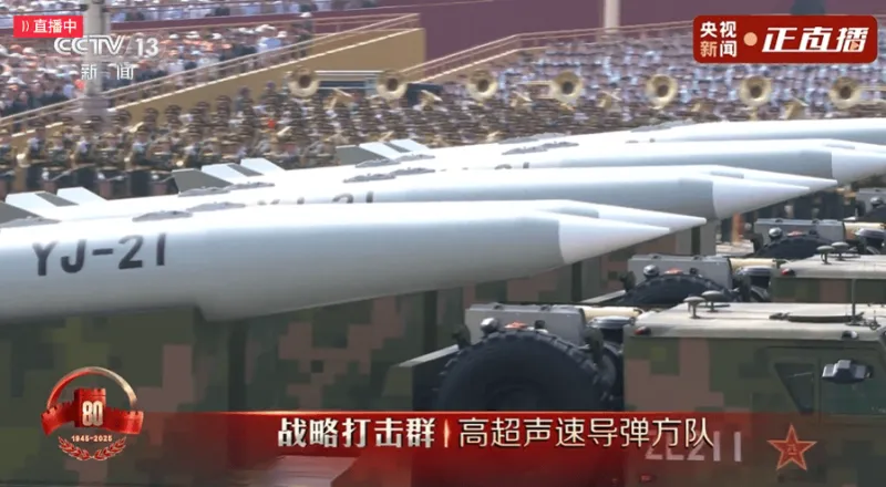 核导弹第一方队、第二方队震撼登场。受阅的“惊雷-1”空基远程导弹、“巨浪-3”潜射洲际导弹、“东风-61”陆基洲际导弹、“东风-31”新型陆基洲际导弹,首次集中展示我军陆、海、空基“三位一体”战略核力量,是维护国家主权、捍卫民族尊严的战略“王牌”。“东风-5C”液体洲际战略核导弹亮相,打击范围覆盖全球。